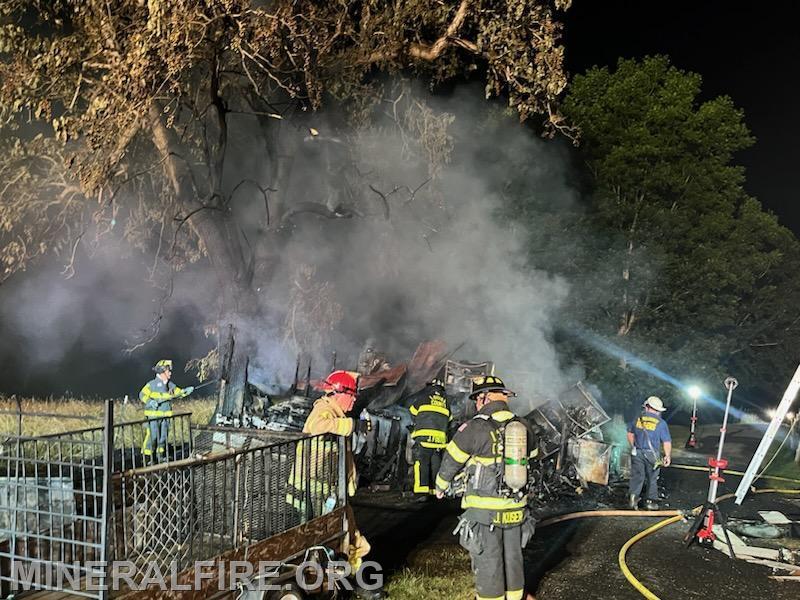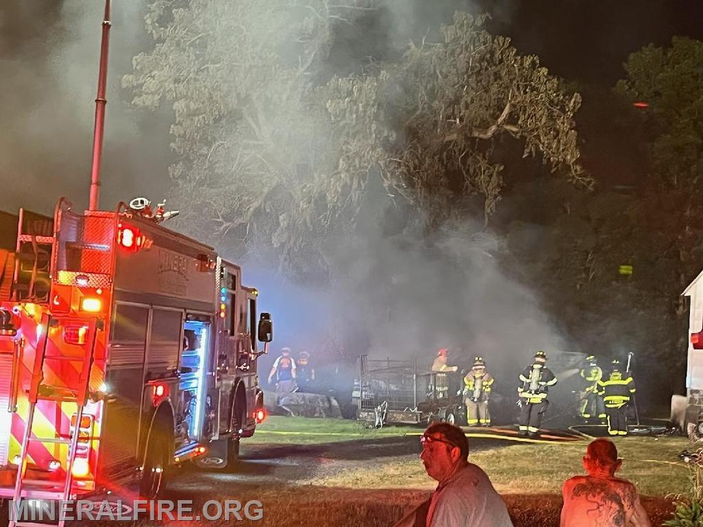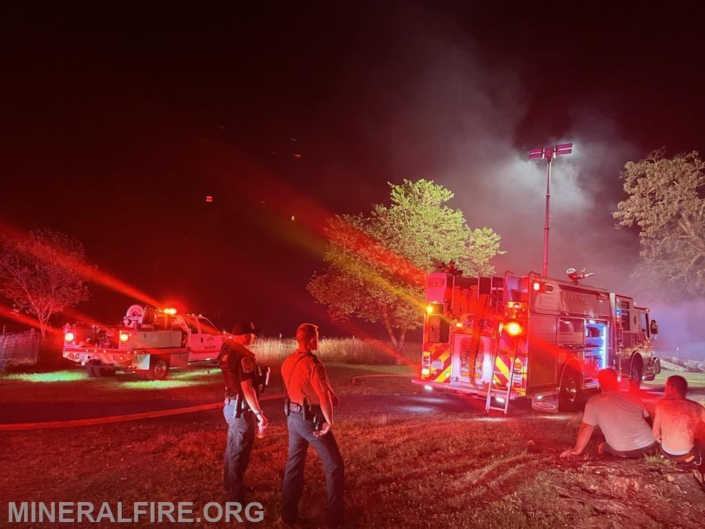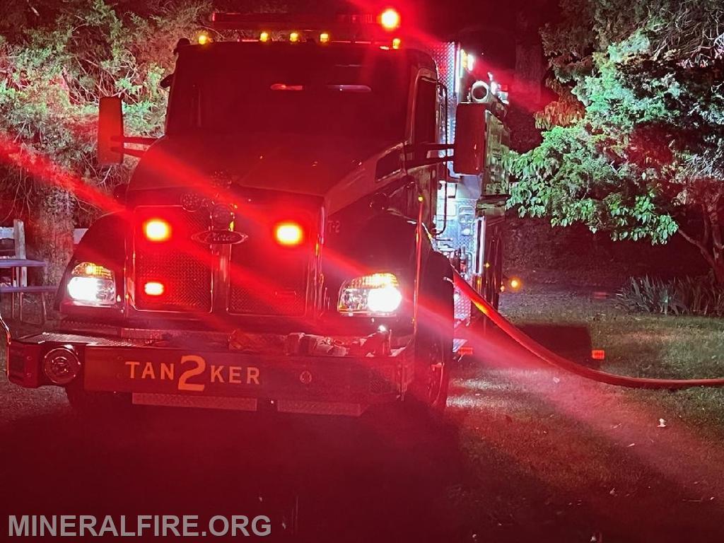 Just after 12:05 AM, units were dispatched for a report of a brush fire threatening a structure. Crews arrived on the scene with multiple structures involved and declared a working fire. SQUAD-2 quickly arrived on the scene with rapid water application to the fire and prevented further extension to the home. MVFD operated with 4 volunteers with assistance from LCFEMS, LVFD, BVFD, and TVFD.